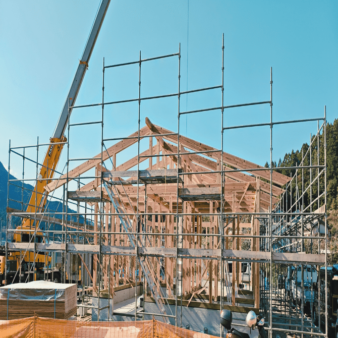 最後に(写真:棟上げが始まった醸造所)